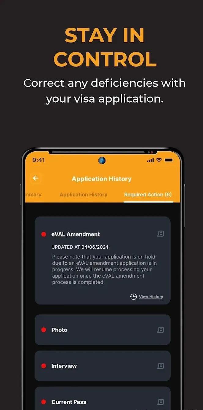 通过Summary可以查看目前的签证进度,并下载EMGS批文和eVAL;选择History可查看签证申请历史记录。