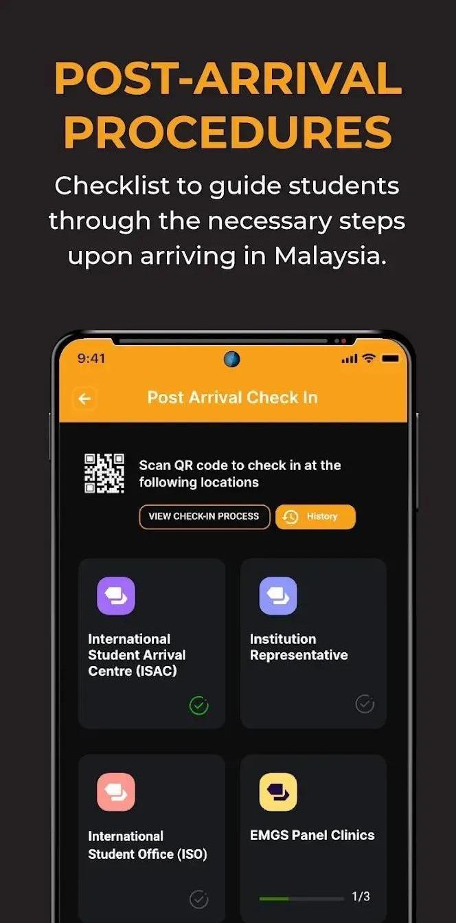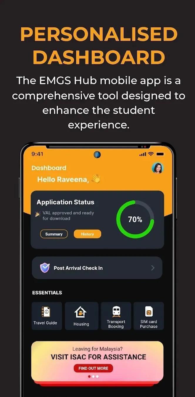 EMGS Hub APP介绍 EMGS Hub为计划到马来西亚留学的学生提供完整的解决方案,包括学生体验,社区论坛,详细的课程和教育机构信息,以及流畅的签证申请流程。- 涵盖所有院校、课程、学费及学生签证申请的详细信息;- 提供留学相关的信息如住房、交通、移动设计及行前指导的相关信息;- 实时查询并跟踪签证申请进度;- 通过该应用程序的社区论坛与留学生们联络;- 顺利完成入境后的流程;- 可快速查询并在EMGS合作的诊所登记;- 保存I-kad及保险信息。 EMGS Hub下载方式 苹果系统:可在APP Store直接搜索EMGS Hub进行下载- 安卓系统:可通过Google Play进行下载- 华为手机:可通过Huawai AppGallery进行下载