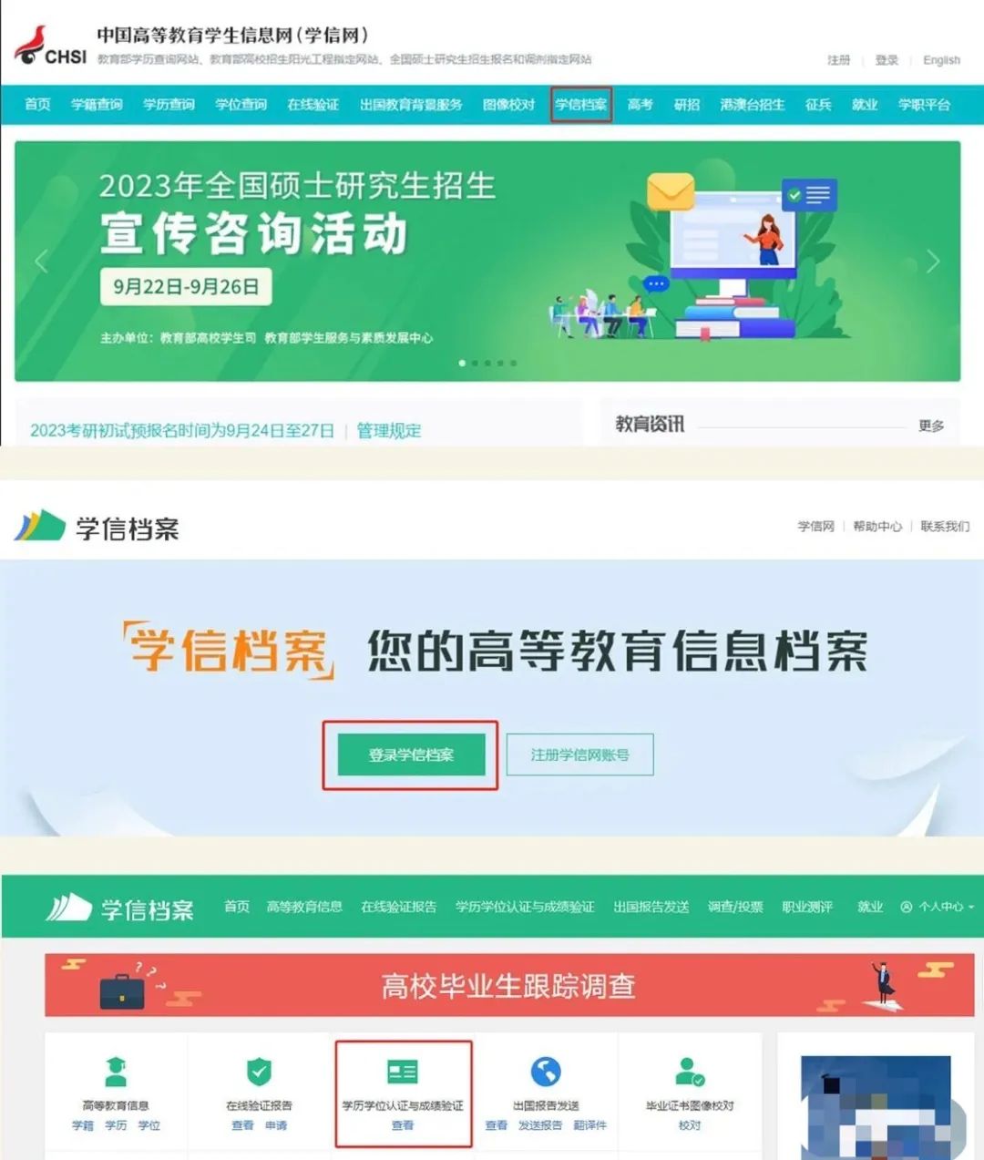 进入学信网,登录学信档案,点击学历学位认证与成绩验证。