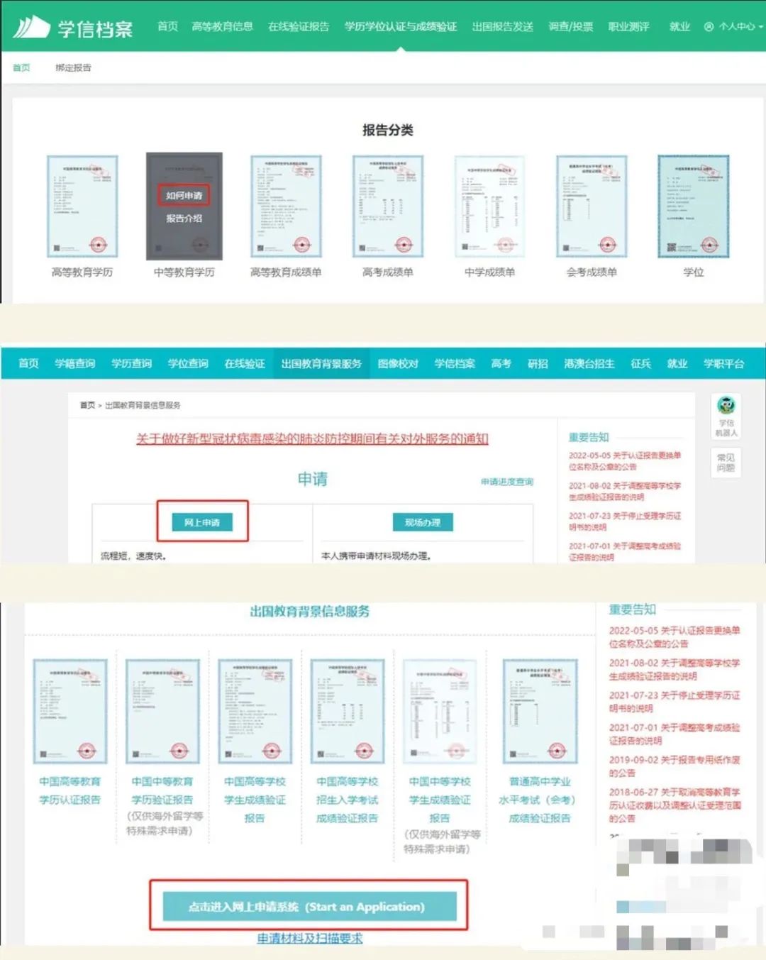 选择中等教育学历-如何申请-网上申请-点击进入网上申请系统。